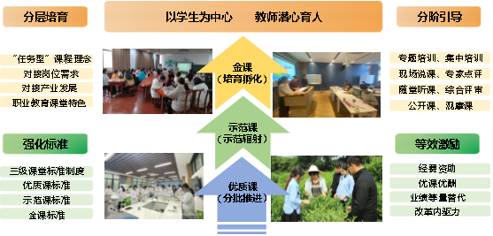 近年来,我校在课堂教学评价改革中积极实践,实施“分类建设、分类评价、分批推进”的优质课、示范课培育工程,开展课堂分类评价,聚焦于课堂教学质量提升。以“任务型”课程理念为指引,通过职教能力培训、说课评审、随堂听课、资助建设等多个环节,体现学生为中心,主动对接岗位需求、对接产业发展,彰显职业教育课堂特色,持续推动“优质课分批推进、示范课辐射带动、金课培育孵化”的三级课堂建设,极大地推动了教师开展教育教学改革的内驱力,让更多师生受益。